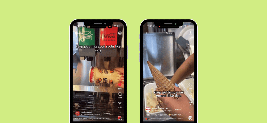 These visual hooks should have you equipped to create some scroll-stopping reel. However, trends are ever-changing and new unique ideas are the best way for you to stand out from the crowd or your competitors.