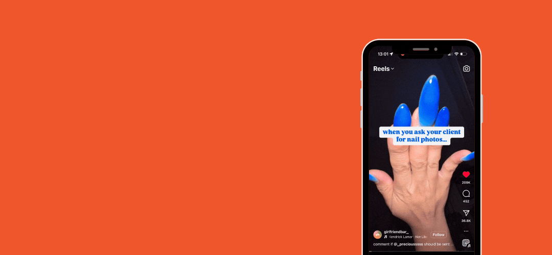 Capture your audience’s attention with a view they’re not expecting. Think: filming from under your shoe or a bird’s-eye angle of you lounging on a couch. If you have no fear of the cringe-factor — take some inspiration from the girlfriendbar nail reel.