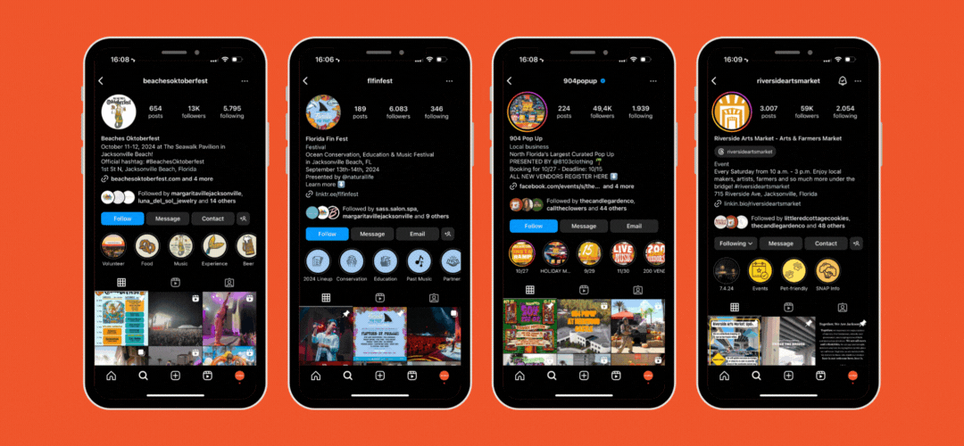 Jacksonville has no shortage of events! Whether it’s Deck the Chairs, Beaches Oktoberfest, or the Florida Fin Festival, make sure to integrate local happenings into your content. This shows that you’re in tune with the community, and it can give you great material for posts and stories. For example, “Catch us at the Riverside Arts Market this weekend—see you there!” could be a quick way to let followers know where they can find you.