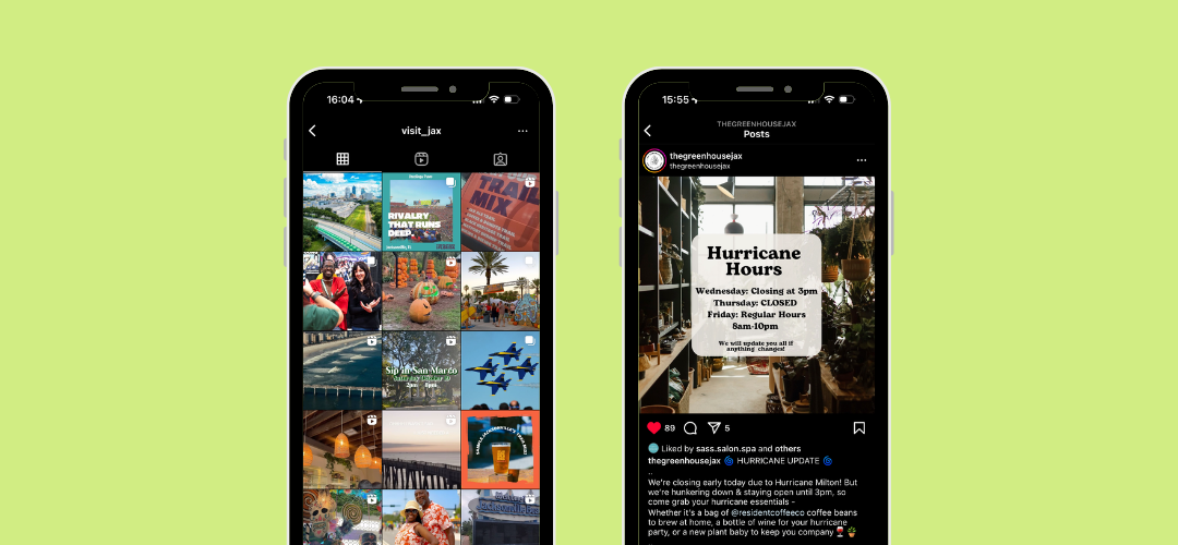 Whether it's a hurricane coming for Jacksonville or the slow traffic on Kernan Blvd due to the annual Christmas lights. Knowing what's going on in Jacksonville helps keep your content fresh. Whether it’s supporting local charities, talking about environmental initiatives, or simply promoting weekend activities, becoming a local advocate helps build your brand’s identity as a community member.